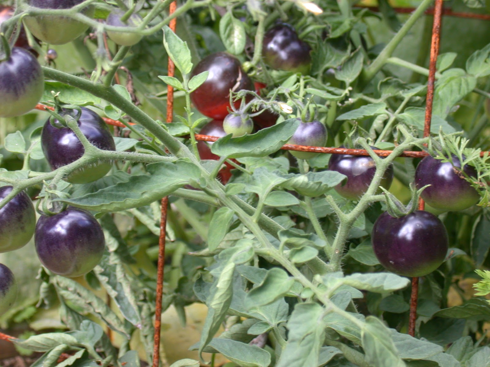 Indigo Rose tomatoes, Early Girl tomatoes, Sweet Million cherry tomatoes, Bennings Green Tint squash, Yellow Crookneck squash!